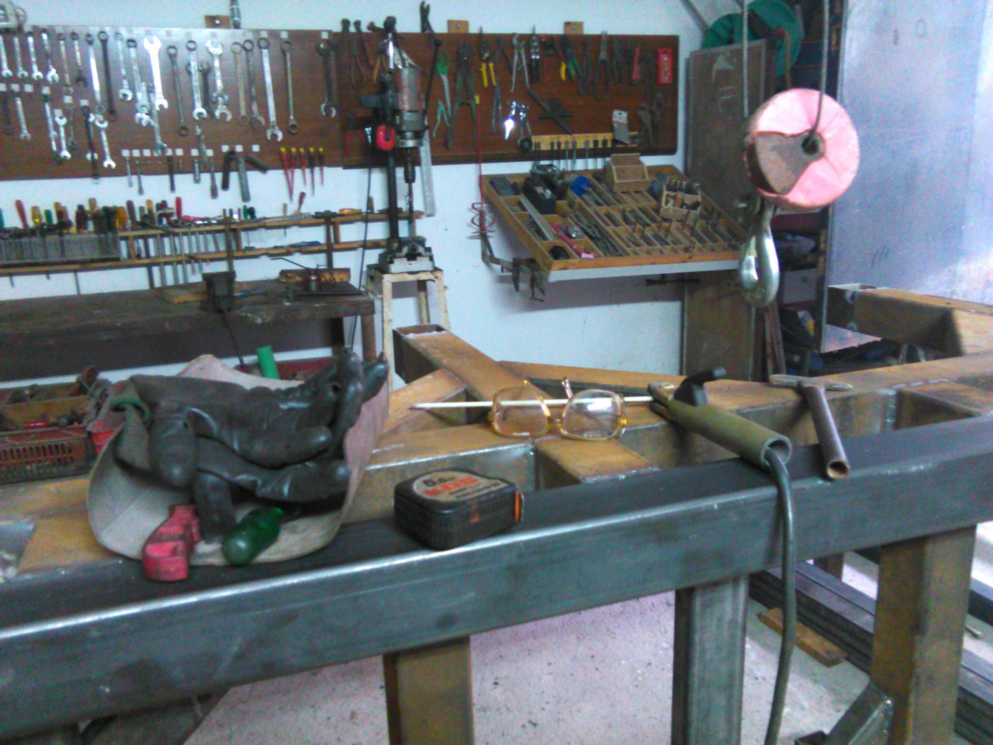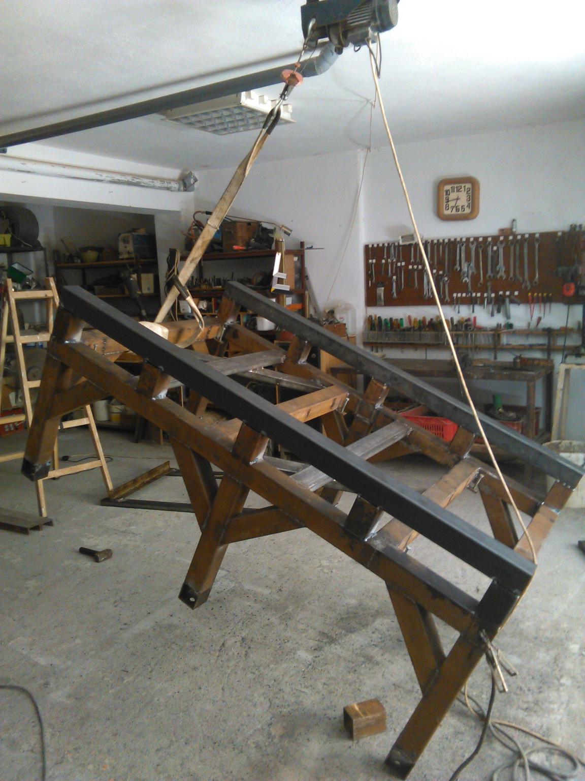 I install a winch at the roof , as the weight of the table is big ( nearly 140 kgr so far) to handle with my hands
