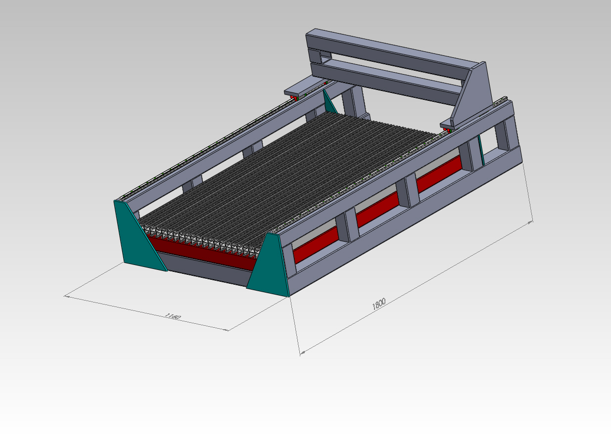 Then with the red color is the cutting table made by 80X80X5 beam