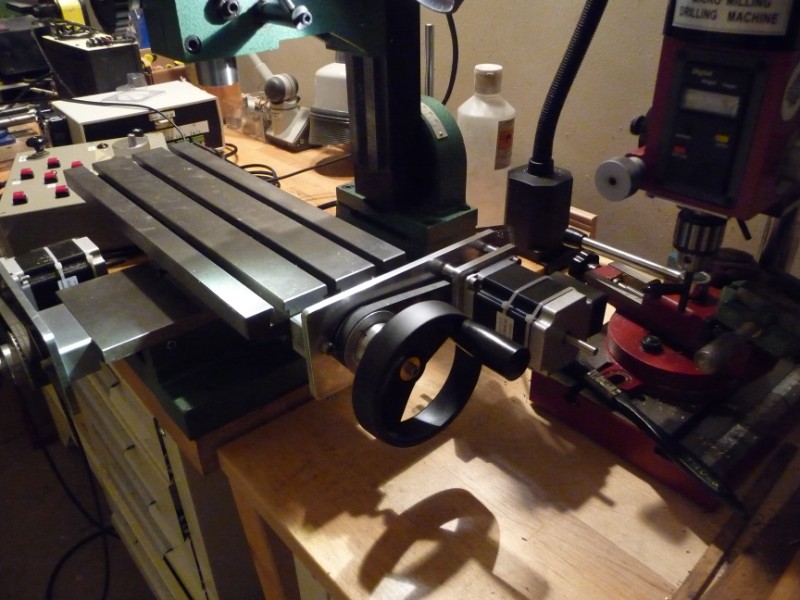 up to now. I have got it moving under its own steam but am unhapy with the play I have in the X Y screws. I have ballraced them all and used two sets of thrust bearings, they are very smothe andare nice to use under manual control but there is some play in the nuts, I want to replace them befor I go for full cnc so am just using it with a controle box a friend made .