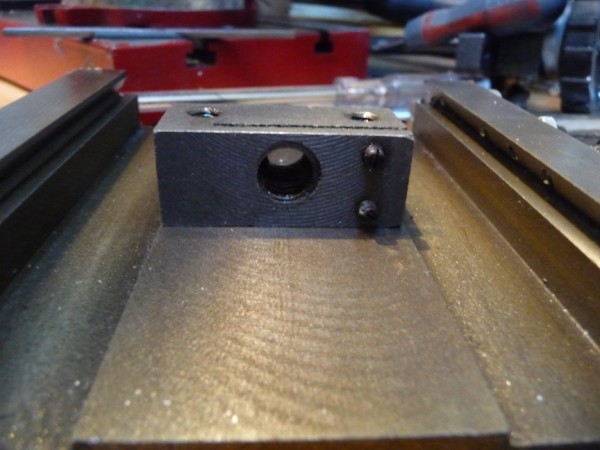 then get a piece of 3/8" thick Delrin and bore a hole in it centrally equal to the bottom diameter of the thread and bolt this onto the face of the nut block.