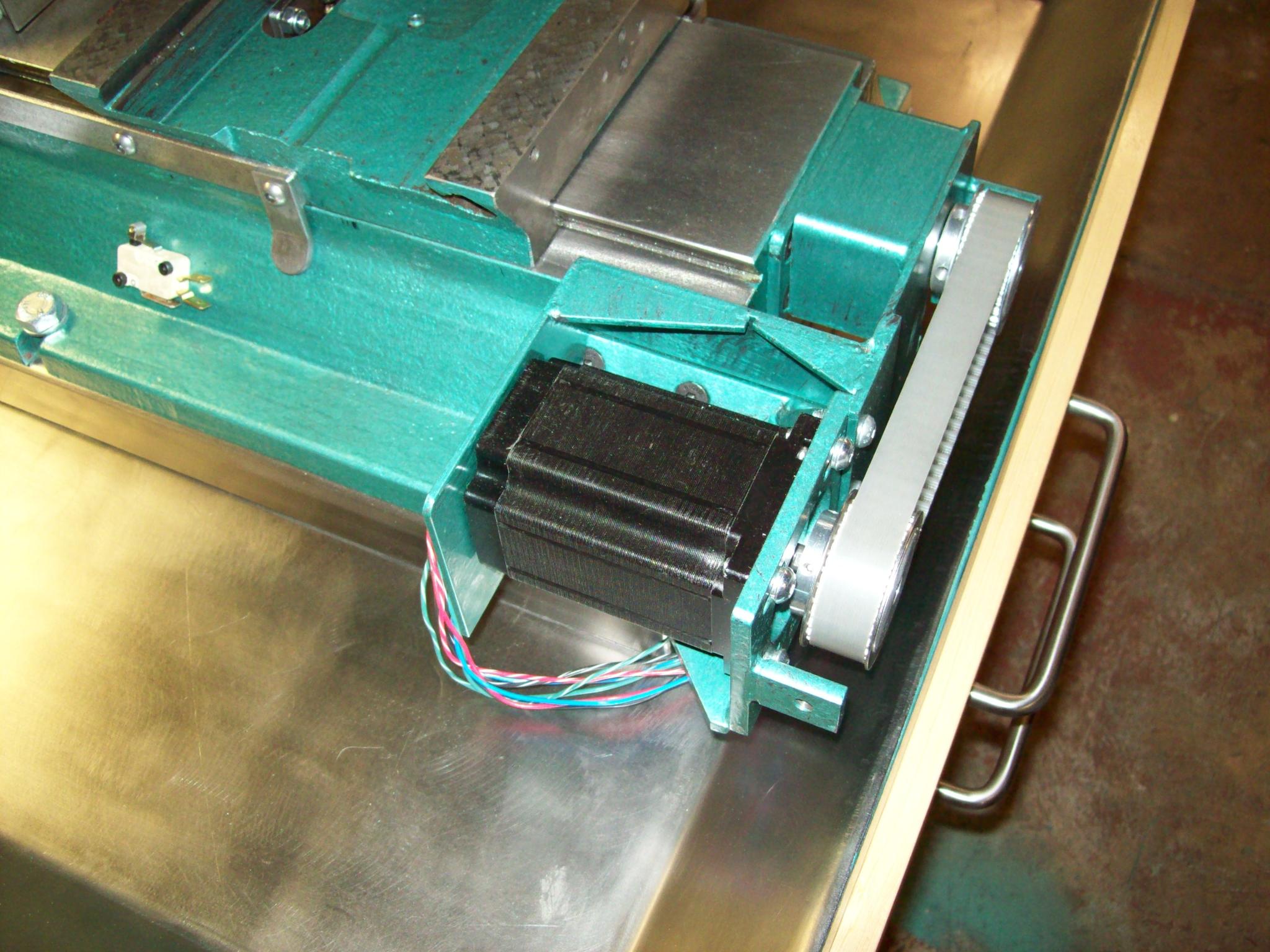 I'm beginning to think that the resonance is a feature of the cheap setup rather than a fault? I'd be interested to see what Jonathon and John S have to say about this, as I know they use these drives and motors on a regular basis. The motor is bolted to 200Kg+ of metal so I'm surprised there's any noise. I'm thinking I might need to isolate the motor bracket from the main machine using some rubber sheet. Having said that, the issue is with the motor setup rather than something mechanical. Pics for reference: