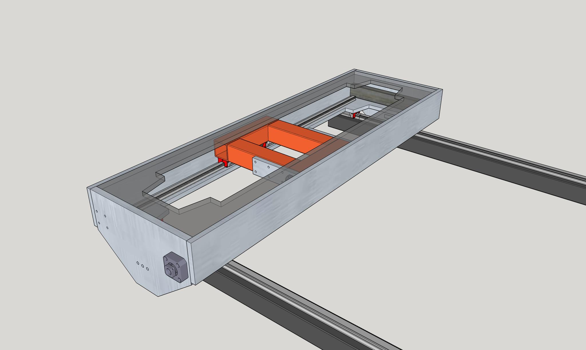 The design in post 83 is very limited by the rail being mounted to a flat plate which is mostly cut away. Also, the overall gantry is effectively 2 'C' shapes. As each 'C' shape is joined to the other only at the ends then you've lost a lot of stiffness.