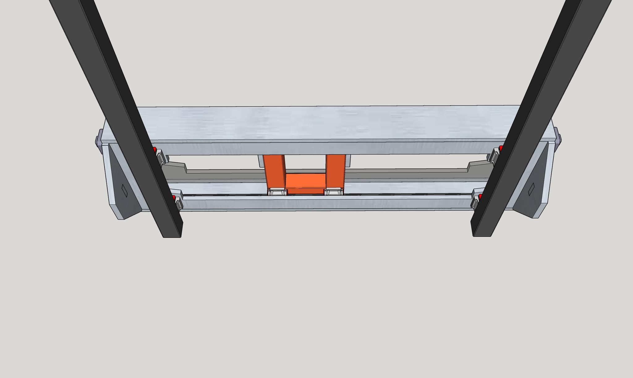 Looking nice, any chance you could extend the width that little bit more to allow for the plate, shaped like a T, to fit to the full width. This would allow you to box in the bearing units and then come up the sides and across the top as one plate, if you do that on both sides it makes the whole thing a box and so stronger all round.