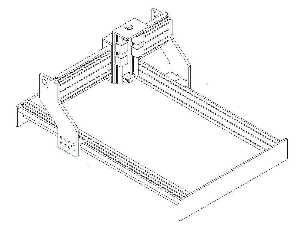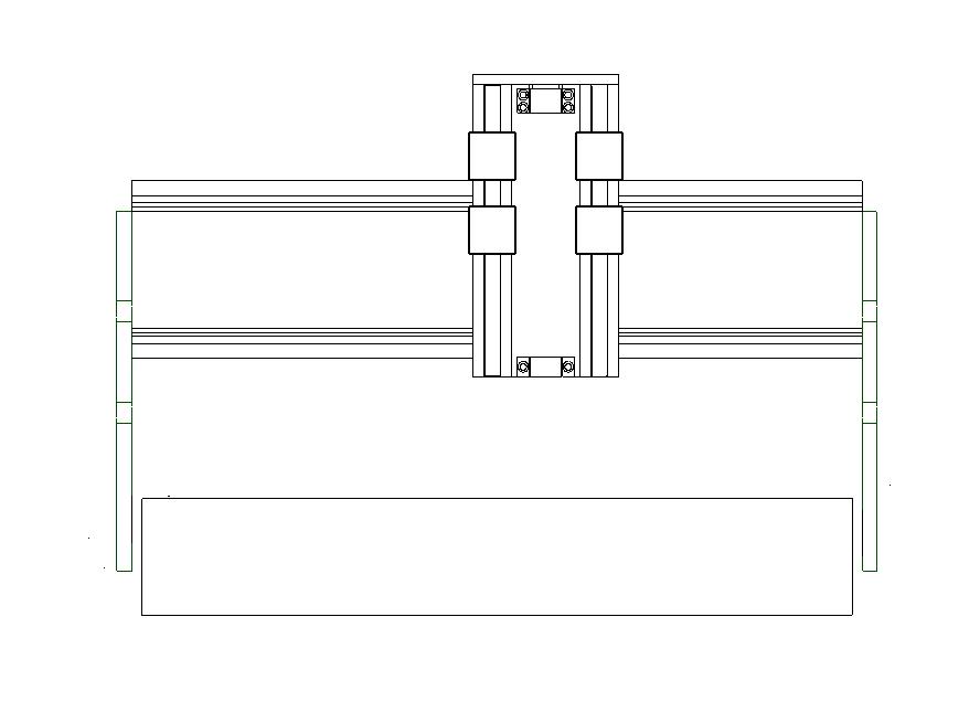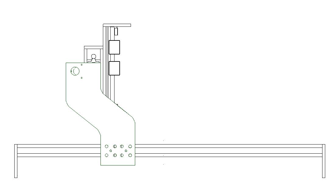 Attached are various CAD diagrams for which I would appreciate your comments. You know the old adage, measure twice cut once! The ballscrew sizes are X - 1100mm, Y - 750mm and Z 300mm with 20mm supported round rails on the X and 16mm everywhere else. I plan on using Nema 23 steppers at 3.1Nm with 36V ps at 11A. The main purpose is to (mill or rout John S -:) )wood for guitar bodies , but also have the capability to do light 6060 aluminum milling. The extrusions are 40x80 (heavy 4kg/m) sections with 15mm toolplate for the gantry sizes and bed ends. The Y axis is 120x40 (heavy 8kg/m) extrusion. Z axis is 10mm toolplate. Router will be Kress 1050FME-1 with a planned upgrade to one of the 2.2Kw VFD Chineese spindles once I've got more funds. The drawings don't show the ballscrews, steppers, router mounting plate or the plate to join the gantry sides as yet - after all it is Christmas! but they will be in the ususal positions.