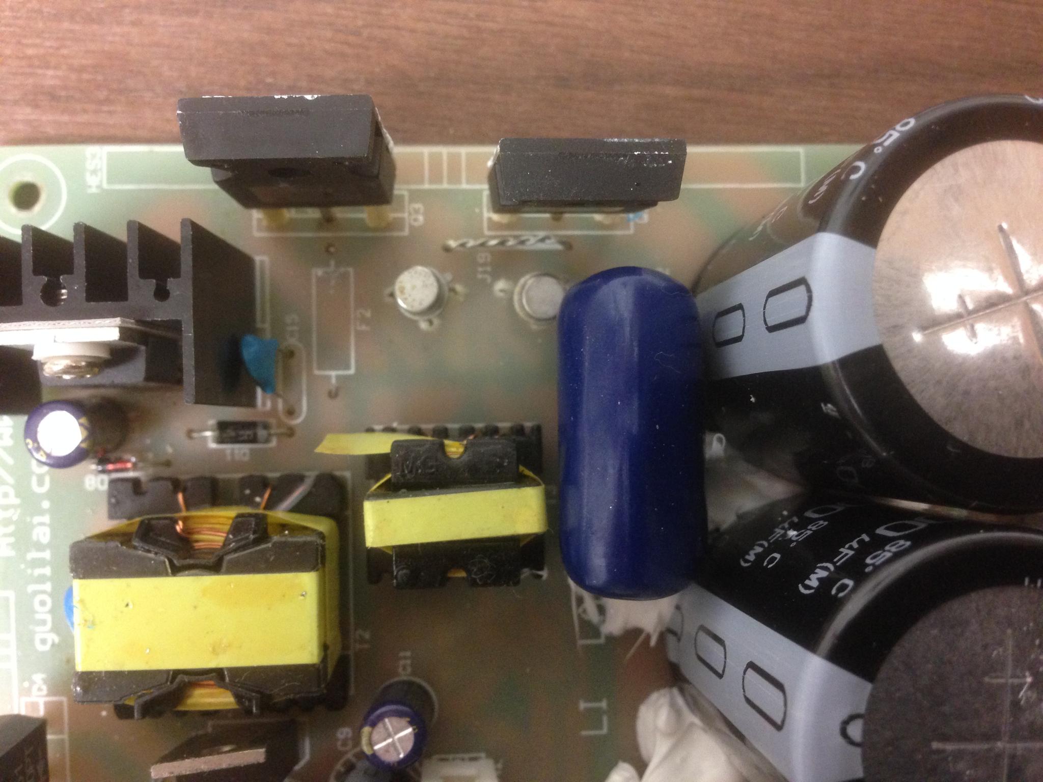Whilst waiting for this stuff to arrive I looked again at the blown SMPS and noticed a tiny glass fuse tucked away in the corner and soldered direct to the PCB (F2 - photo shows it removed).