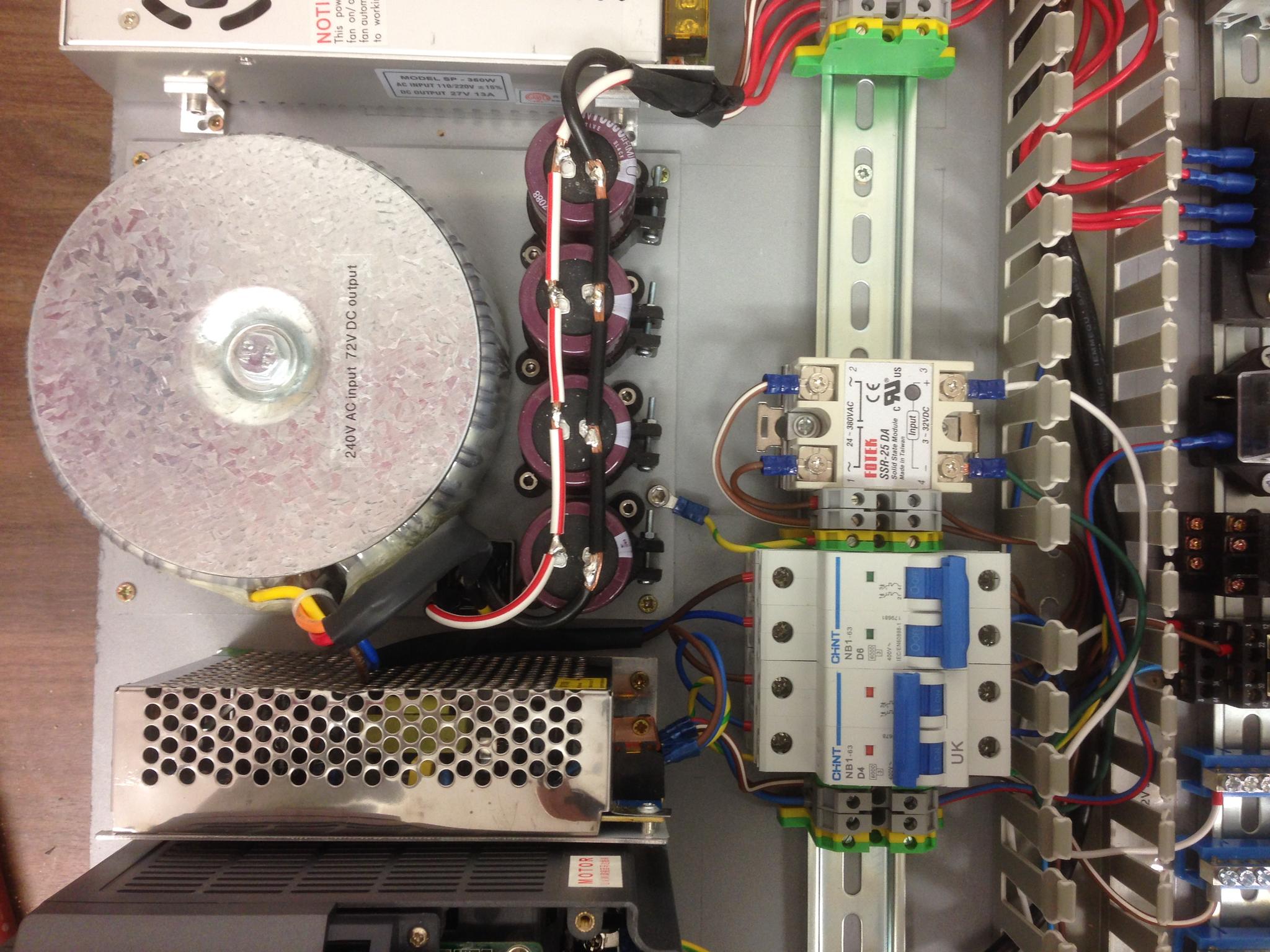But since these pictures were taken I've removed the SSR because as mentioned above I don't think it works well with the transformer. If it had worked then I didn't plan on using a heat sink because the 25A rating was just to help it survive the unrush current (which is momentarily 100s or 1000s of amps), but then it should settle to a couple of amps (?) for normal running. But if you've got a heat sink then I guess there is no harm in using it anyway.