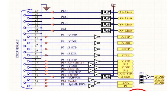 If, I put the voltmeter across the end of the parallel port (pin 4+ , pin 24-) I read 3.3v when 'jogging' the Y axis in one direction, and 0v when jogging in the other.