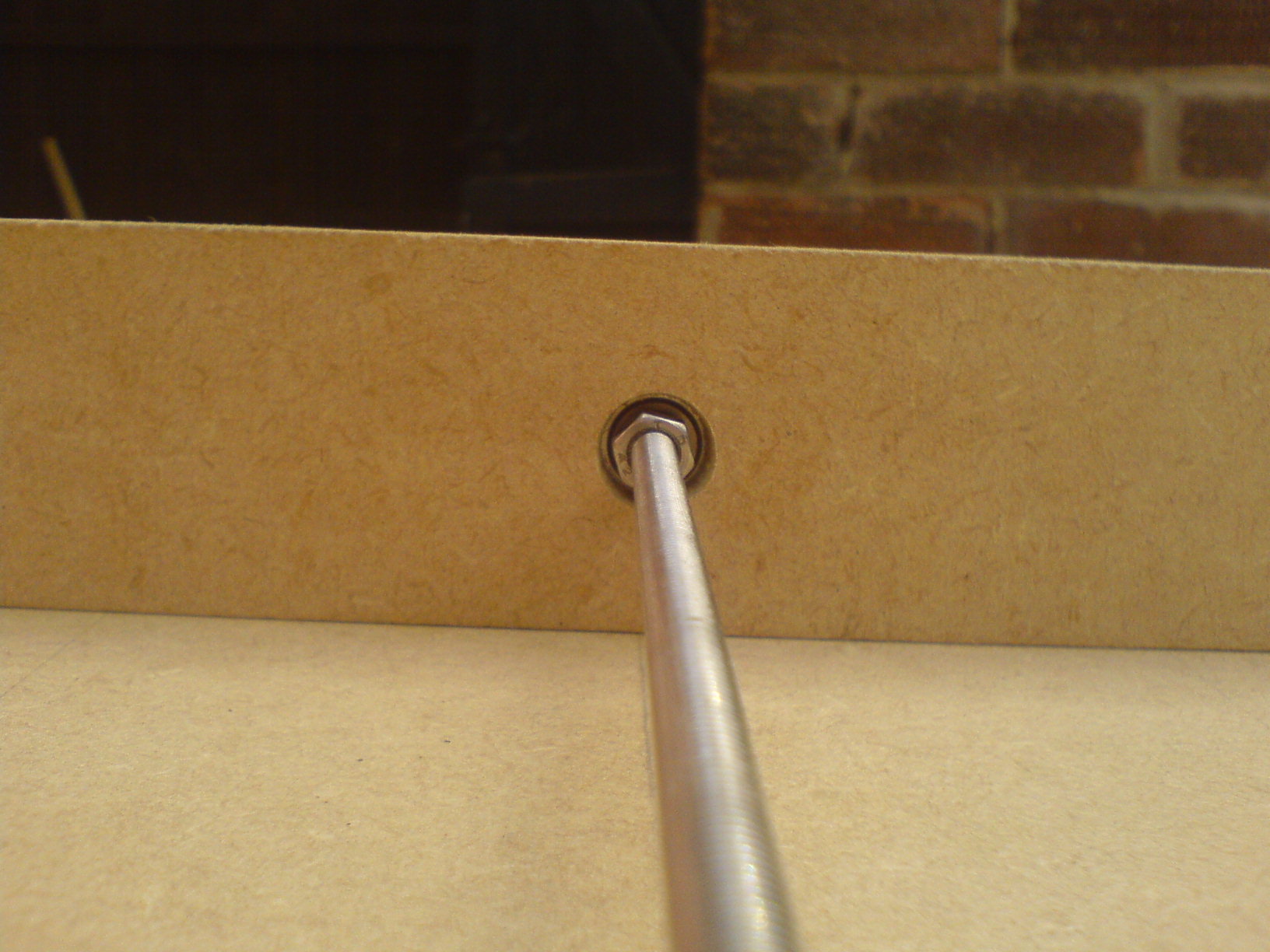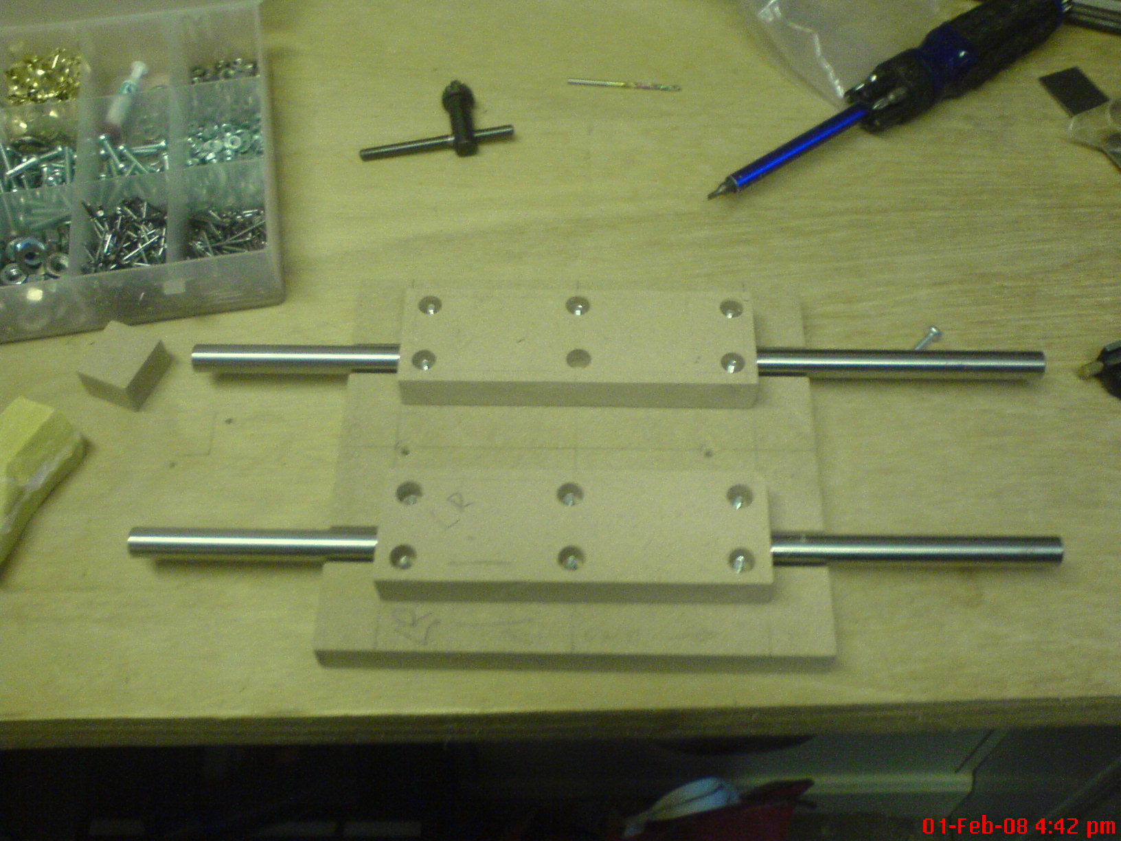 The 14mm holes I cut in the rod support plates are small; the rail supports allow me to move the rails in all directions so as to get everything square, parallel and lined up correctly. There is enough space with the 14mm holes but I think given the choice I would have preferred 16mm holes so there was just that bit more room and clearance for the rails so I may re drill these holes at a later stage, though there isn’t really a need.