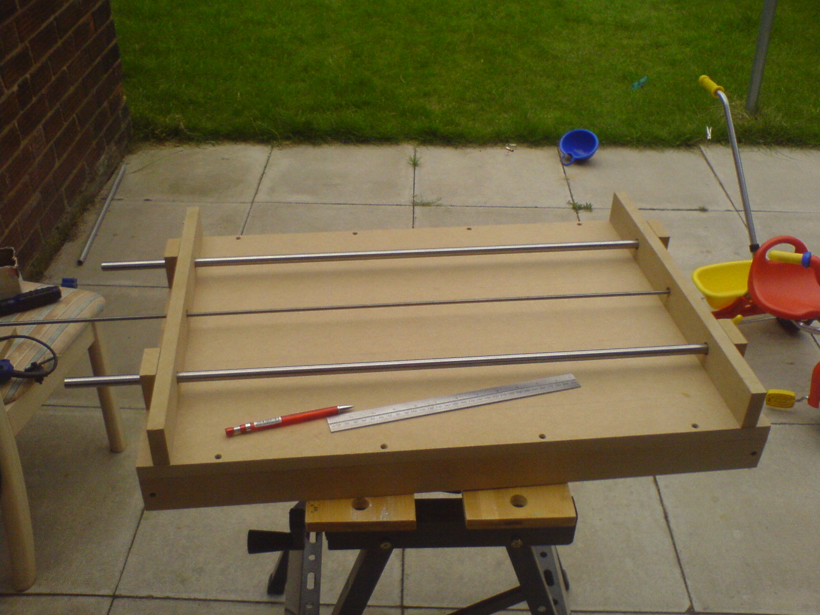 I decided before I went on to the next stage, I would test fit the rods and rails and the bearings of course, you'll notice that I’ve put my bearings on the outside of the machine. This isn’t a must but I would like to put some tension on the rods so by putting them on the outside we can do just that.