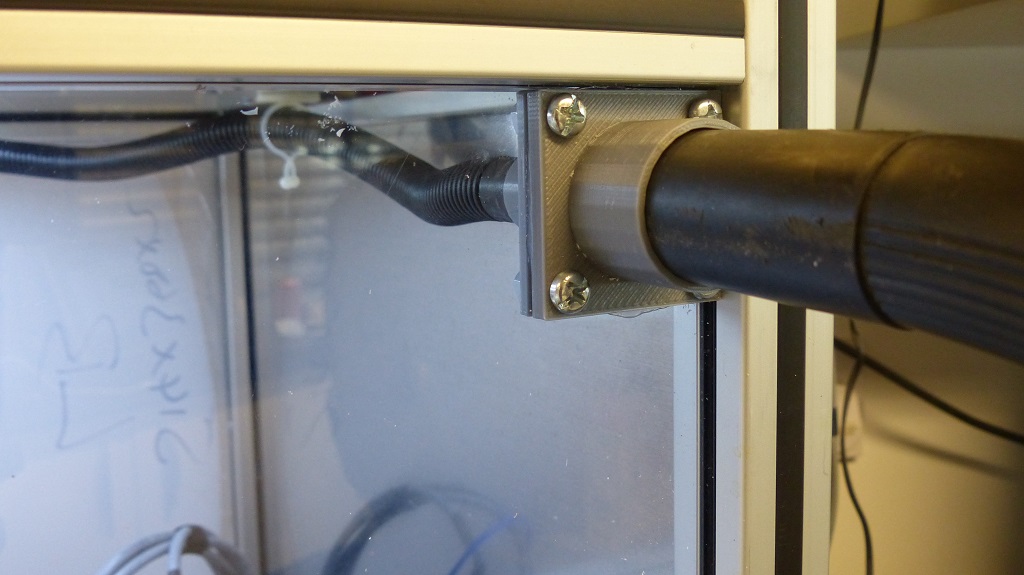In the meantime, I have been busy playing with the new RepRap Ormerod 3d Printer and have found a few practical uses for it already. I made some connectors and clips for connecting a vacuum hose into the enclosure. Here's a couple of pics...