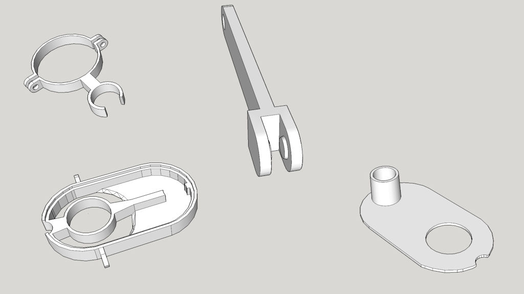 From the sketchup image you can see the shoe is in two parts which I just simply glued together. I can easy just pull the shoe off when changing bits as it just clips into the arms either side.