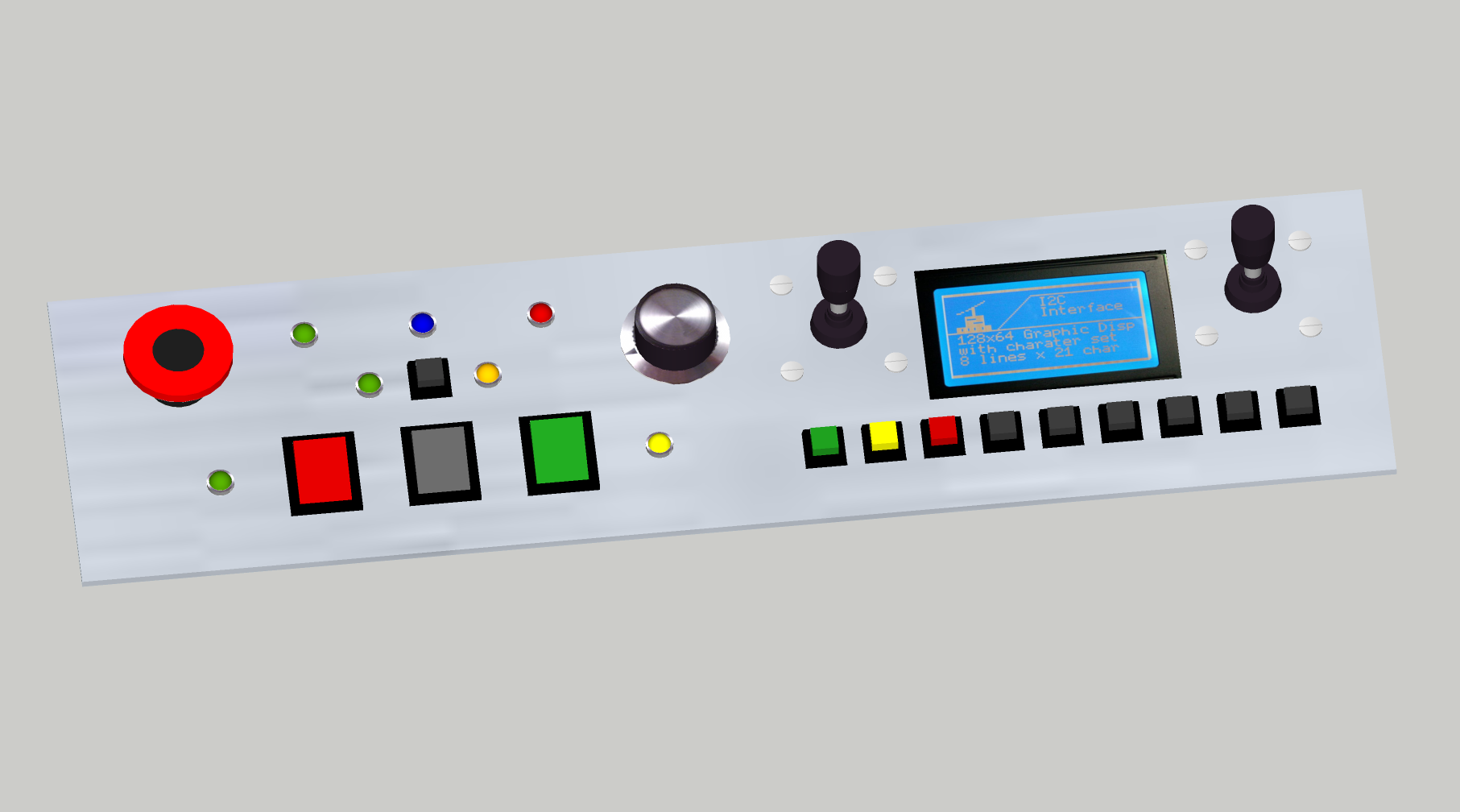 The right hand side of the panel consists of the 2 joysticks, LCD display and 9 buttons which I will use to control some basic functions in Mach3.