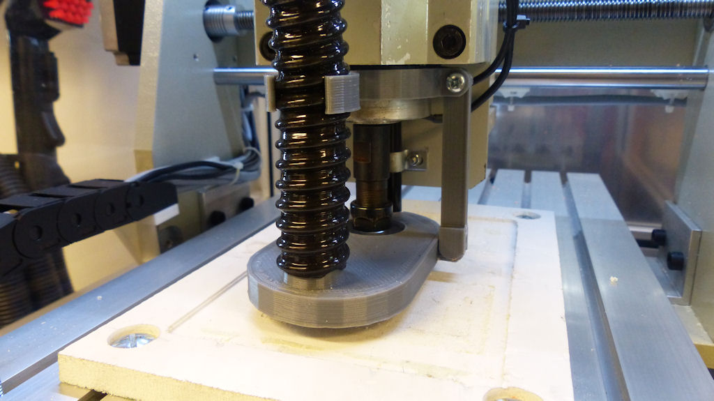 For my PCB milling it works great as it is, but when milling acrylic you still get the odd piece flying out. I think a suitable skirt will solve that, but I don't want to use brushes, I think I would rather something clear so I can see whats going on. I also think if I wanted to be rally clever I could add some LED lights to it as well, or maybe just print it in clear PLA.
