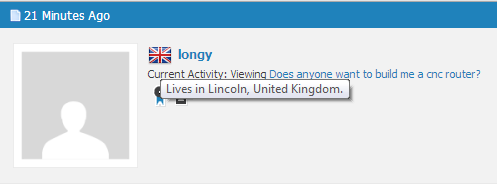 It used to say under the member's ID where they come from. Recently an option was changed in the forum software so you rather inconveniently have to move your mouse over the flag to see that he's in Norwich: