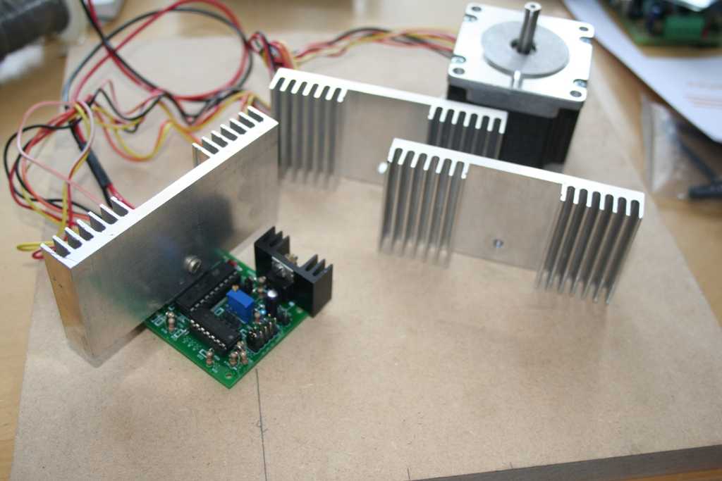 The driver boards were home made using a 4070 Ex-Or ic, 4027 Flip-Flop and L298 H-bridge driver