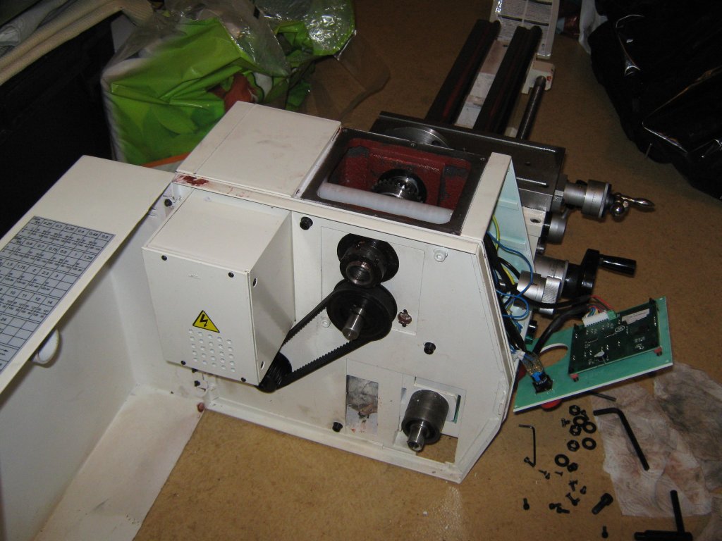 I'm guessing for the CNC conversion that a couple of ballscrews, direct couplings, NEMA 23 motors, BOB, PSU and Mach 3 and I'll be on my way. Questions at this stage are how can I control the spindle speed, it's a brushless DC motor so I presume a PWM signal is generated from the electronic speed controller, could I control it from Mach? Could I use the existing leadscrew and just take the gear off and atach the stepper direct? The cross slide lead screw looks like it's going to be interesting. I'll probably take it apart tomorrow and have a look.