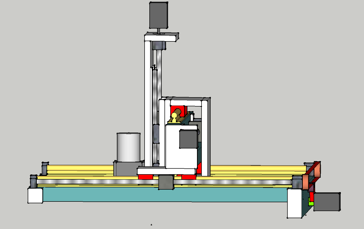 EDIT: ok I realised I want the frame to be as simple as possible, so 100x50 steel box sections for Y axis makes more sense. Those white plates are supposed to be aluminium 20mm thick. Ignore the missing underneath structure.