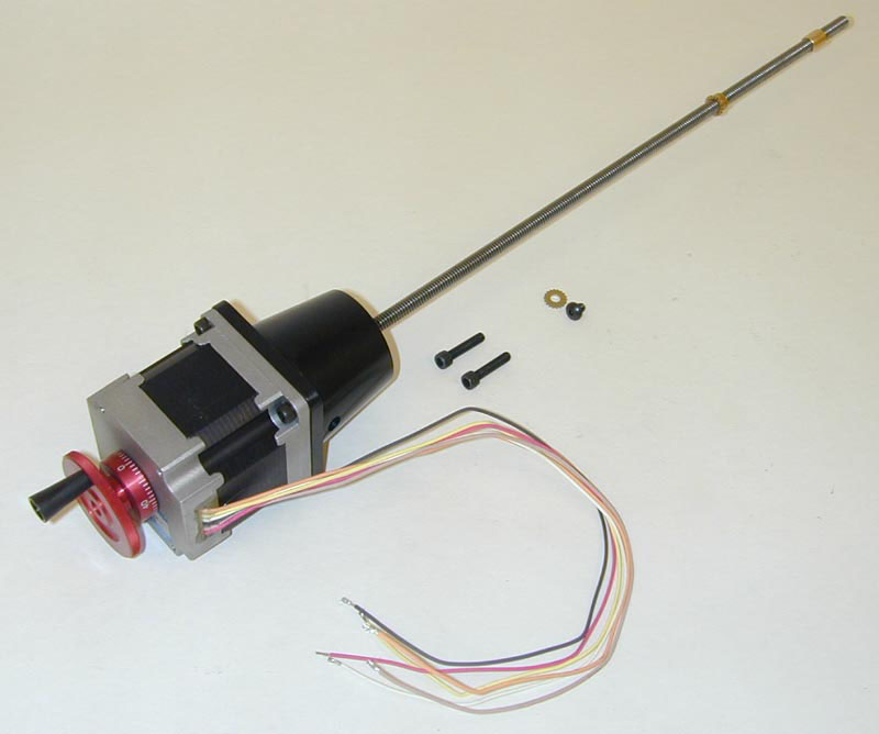 Fit a hand crank to the rear stub shaft of the stepper motor.