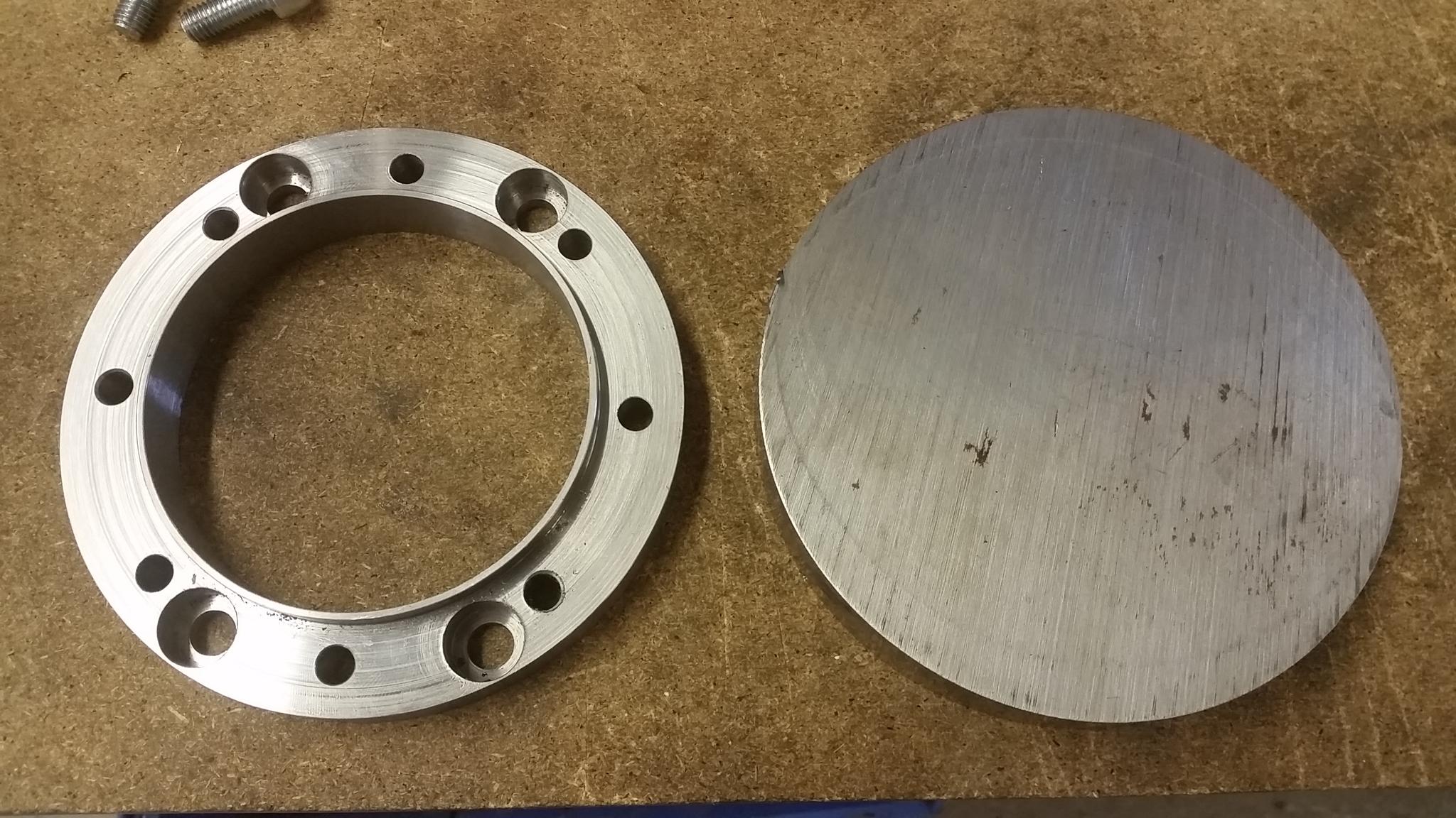 Pics of the spacer, the DRO is brilliant for doing PCD's...makes it easy to drill bolt holes.