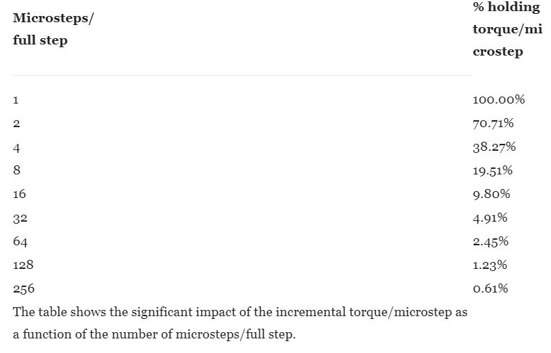 My observation regards torque drops vs micro stepping were not according to what I knew from data.