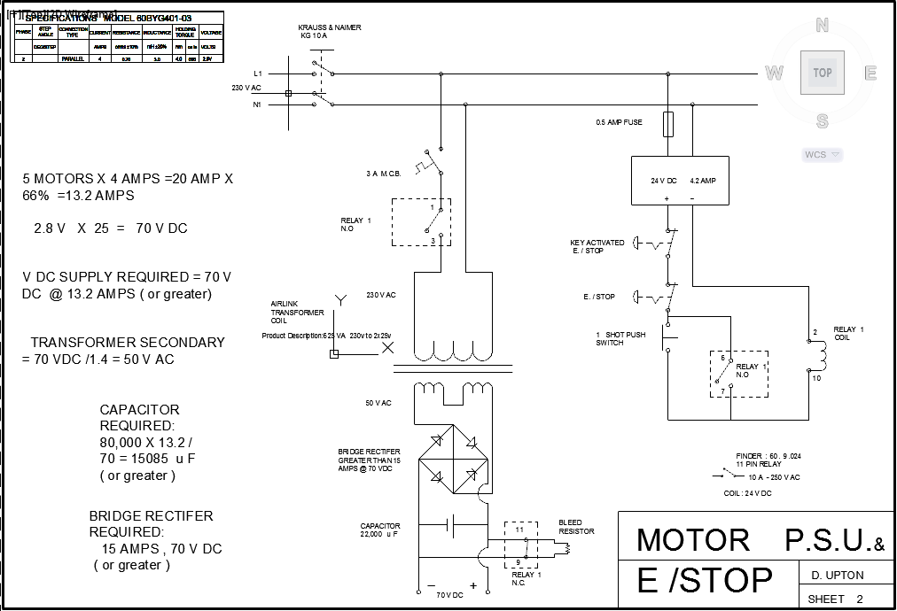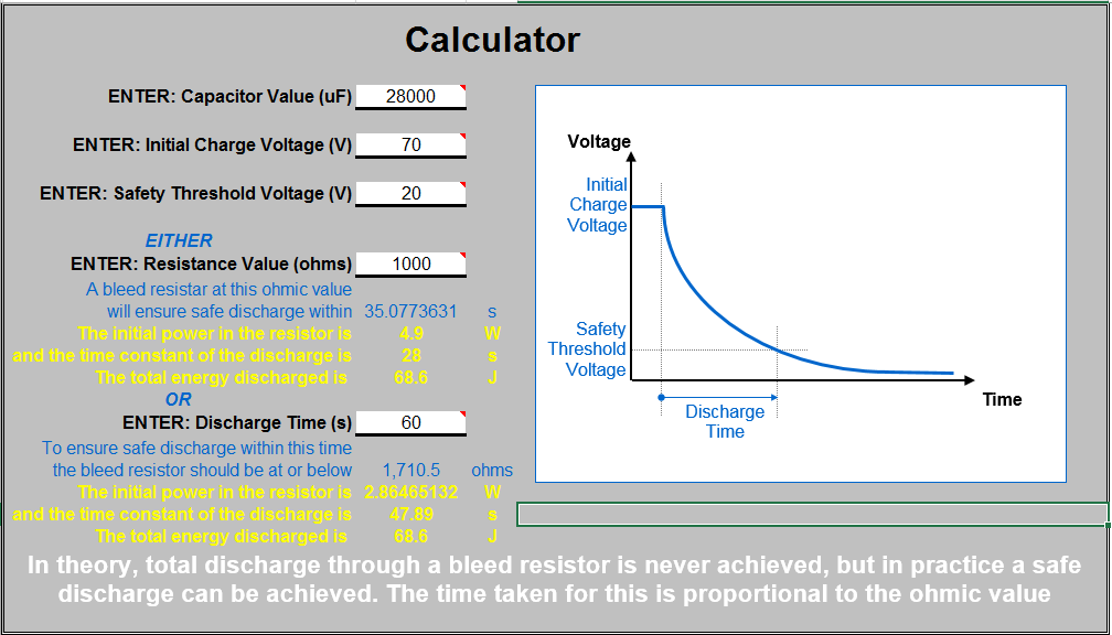 I have the PLCM-E3 motion control & PLC4X-G2 breakout board ordered but they will not be with me until march because of Chinese new year. i am using the time to try and get to grips with the electrics / electronics and hopefully start into the MACH 3 (getting to know you period !!) i know some builders on here do not use bleed resistors to drain the caps from the power supply . i was going to leave the drives drain the caps as suggested on various posts but on second thought said i would at least try and get to understand how it done and maybe use a bleed resistor across the n/c contact of the e/ stop relay to keep to good practice and safety as pointed out. i came across this https://www.digikey.com/document-red...calculator.xls i have a result of 1000 ohms over 35 seconds with initial power at 4.9 watts. OR 1710 ohms for 60 seconds with initial power of 2.8 watts. i don't know if these resistors are viable because i've absolutely no prior experience to work from. maybe they will do or perhaps previous builders use a different spec. i have also updated my electrical dwg to reflect my proposed capacitor bleed arrangement. any feedback on this will once again be greatly appreciated.