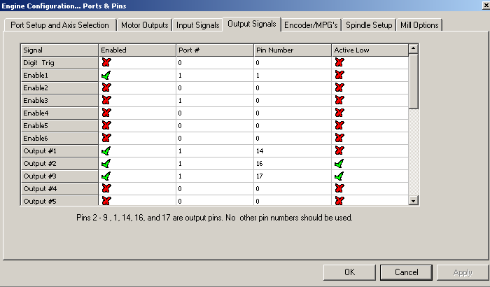 i toggled the active state of the relays to see if mach3 could change the state of the relay from a non responsive state . i have them set back now to the folowing