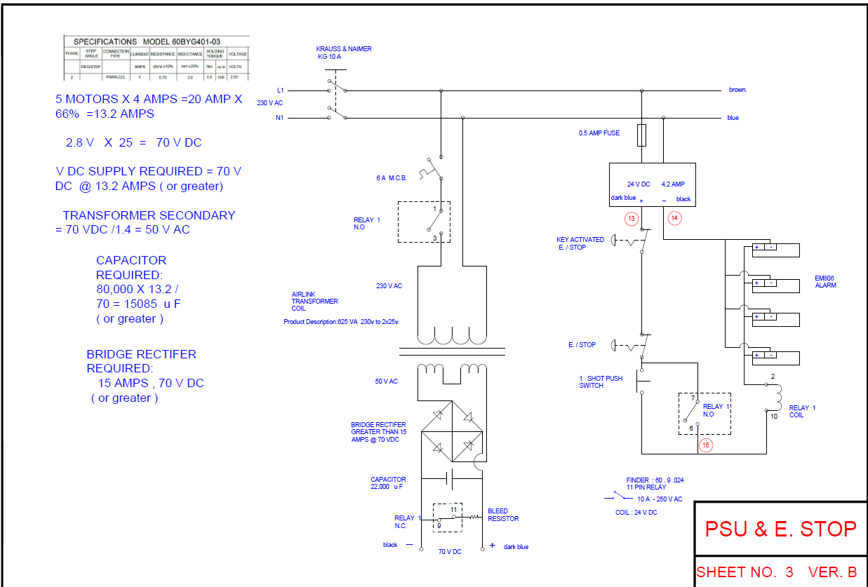 Thanks for that Jazz, i got totally confused trying to accommodate a hardwired circuit with the e stop and an alarm input to the BOB( both versions of what you have sketched). my BOB has a dedicated input for force turning off the ENABLE, at least i think that's what it does. i'm trying to use just 1 relay and as it stands and i have that in the PSU & e/ stop circuit. I have updated the dwg to reflect what i think is your schematic. i probably don't need an input from the alarm drives to the BOB. i got caught up in thinking that an input to MACH 3 was required. i also had a look at Eddies dwg and saw that the alarms from his drives were in series so that added more ??????. as in connecting a ground wire to the positive terminal of the alarm drive and out the negative terminal and on to the next drives positive terminal etc. that really had me confused along with a dose of the flu which got my head in a spin. i don't need an e/stop signal to the BOB so on reflection , or do i?