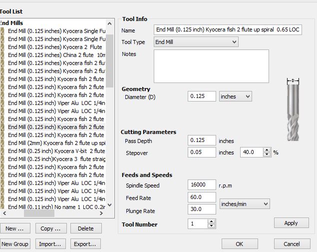 Everything in imperial,1/8 or 1/4 it doesn't matter as usually the machine is the limiting factor here , not the bit , though more careful with longer or thinner bits :