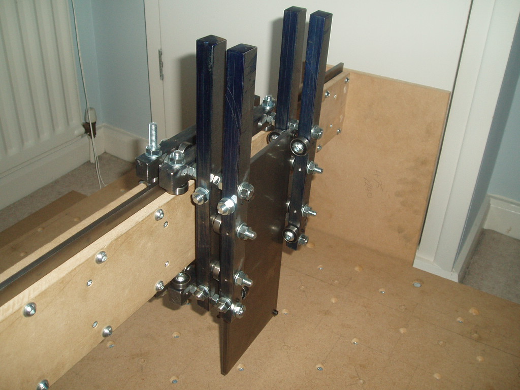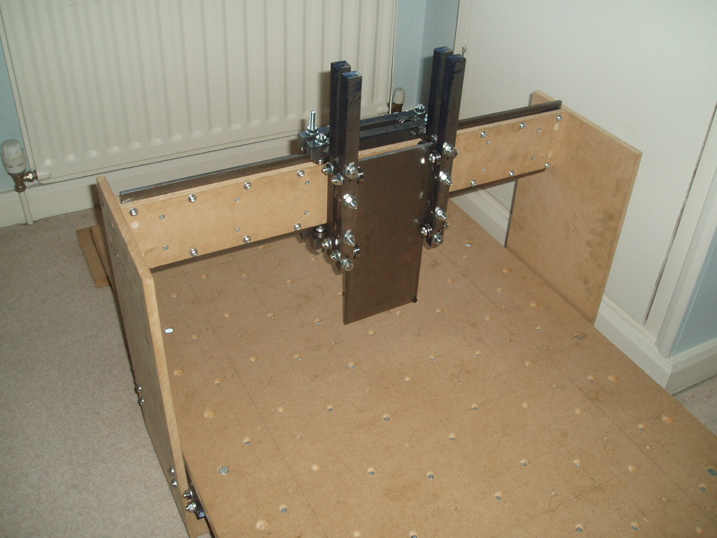 OK, a bit of progress. The Y and Z mechanics are finished now. A bit of adjustment will be needed to get the Z exactly perpendicular to the table, but that can wait till leadscrew time. I'm pleased with the way it's turned out - heavy for sure, but no sign of any flexing.