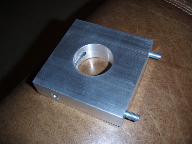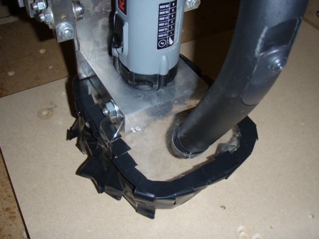 I finally got around to replacing the dodgy original MDF router mount with a shiny "John S" type. An evening with an alu block and a mini-lathe is all it took.
