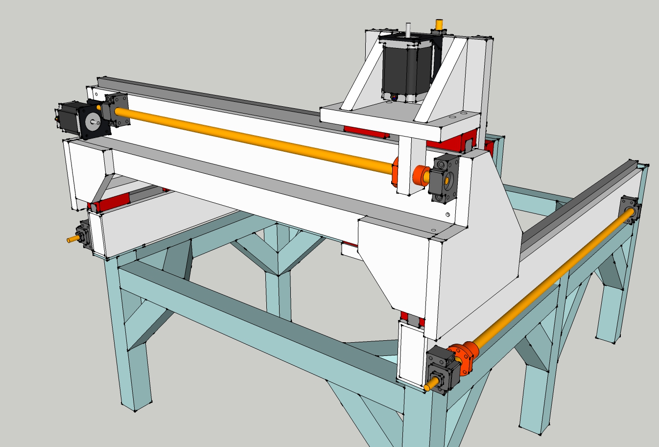 I am a bit stuck at the minute though, am trying to figure out how to drive the X ballscrews from a single centrally mounted motor but leaving the ends of the M/C open for any job overhang I may need. It seems like I may need a lot of pulleys to guide the belt but I am not sure it is a very elegant solution, Any Ideas or am I just going to have to go with twin motors?