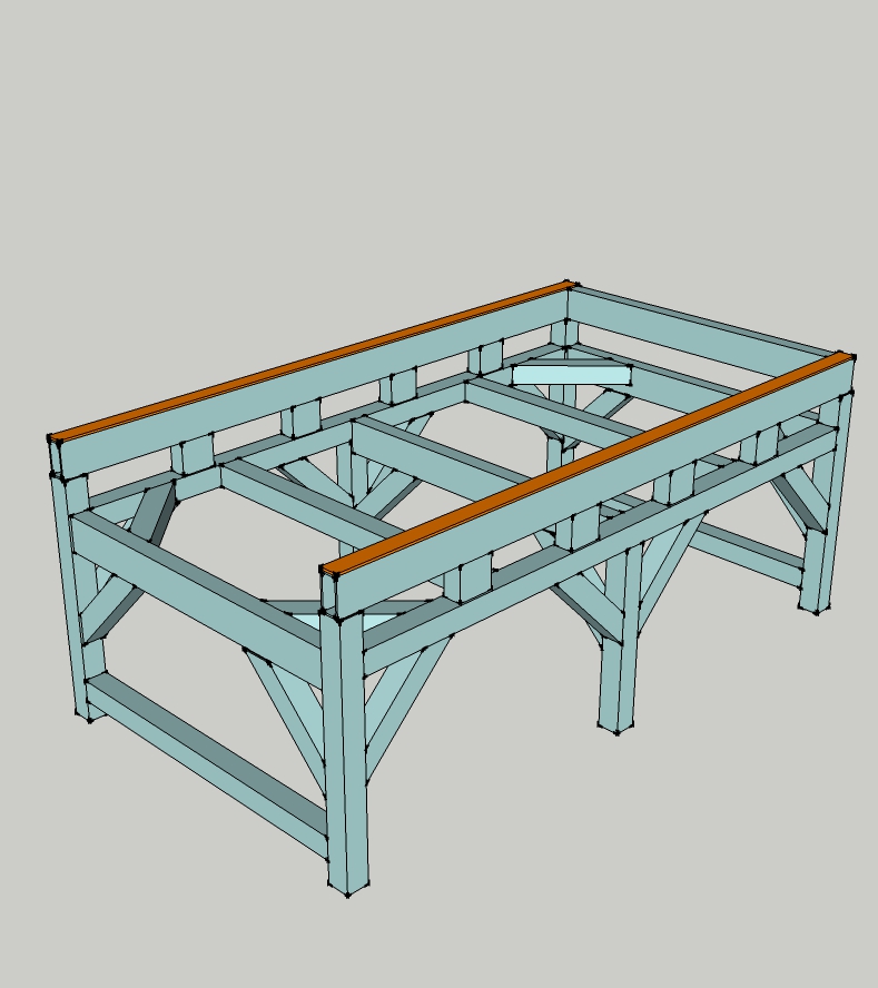This is what I had in mind, There will be aluminium blocks in each end of the X box section tapped to accept the the two bolts through the legs?