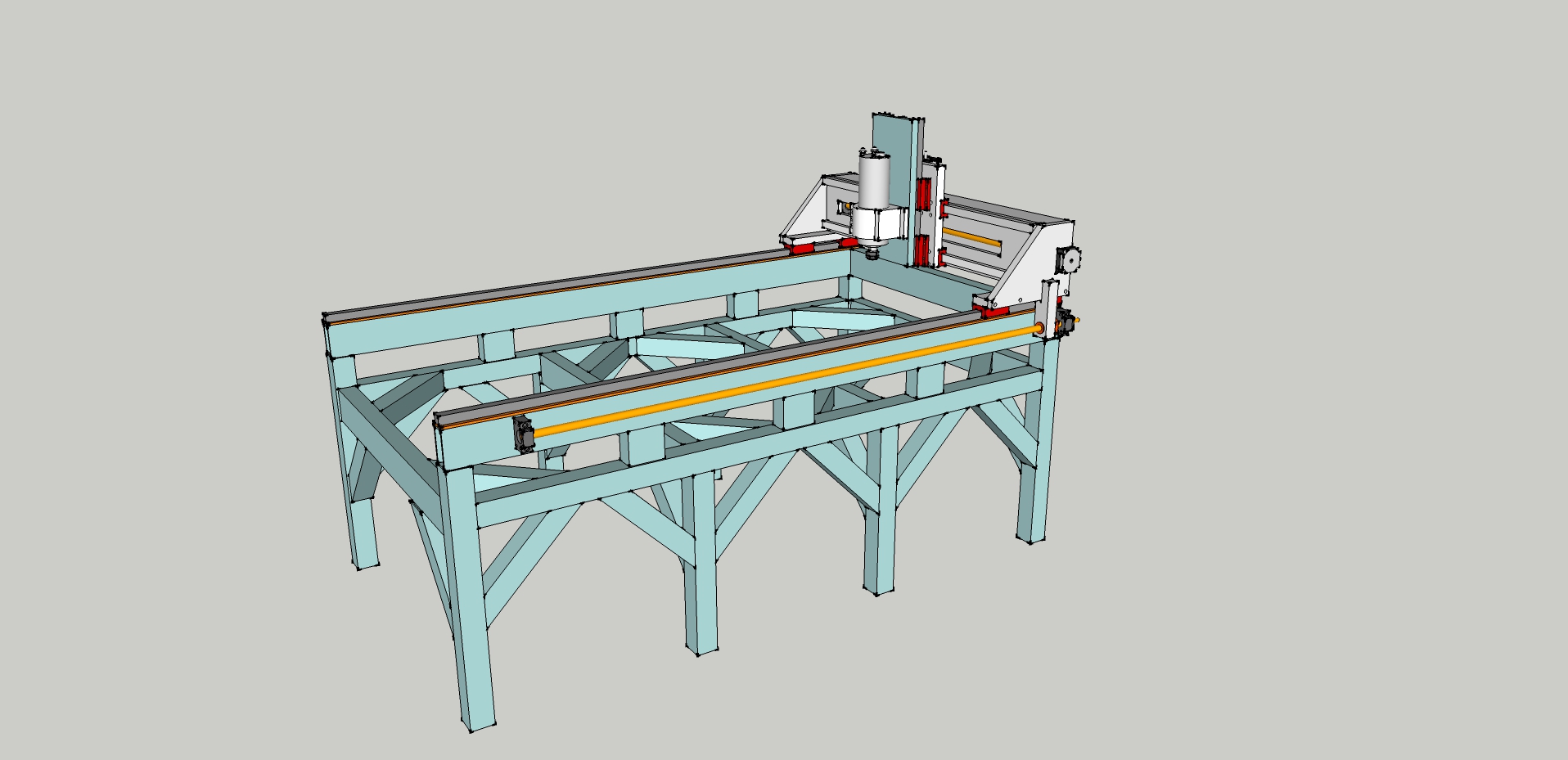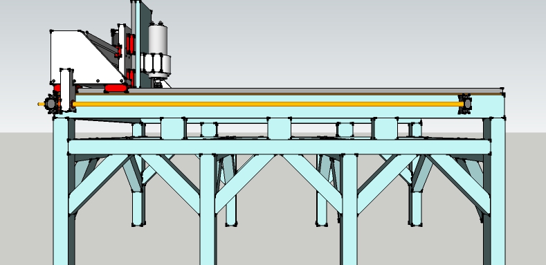 All bits in blue are steel, the gantry is built using 80x40 4mm box section aluminium with a 20mm plate across the front, the X axis rails will be 80 x 40 steel with 5mm of resin for leveling but I am not sure whether to go 3mm or 4mm steel thickness (is 3mm enough, I will go 4mm if its weldable??) the frame is 50x50 3mm steel and I plan on putting 4"x1" aluminium box section running the length of the bed with a 10mm alu plate on top of that drilled and tapped.