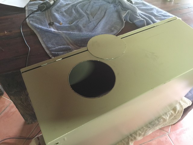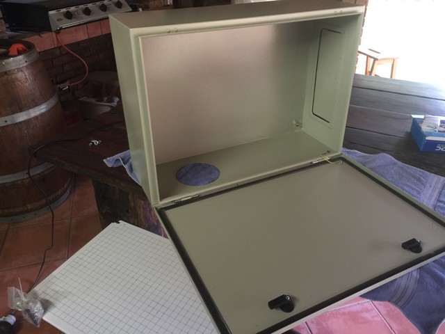 Anyway back to the topic. Got a nice 800x600x220mm steel cabinet for a very reasonable price (+- 70GBP). I was concerned about my ability to cut holes etc in the steel but got it done relatively painlessly using a Dremel and those small clip-in cutting disks.
