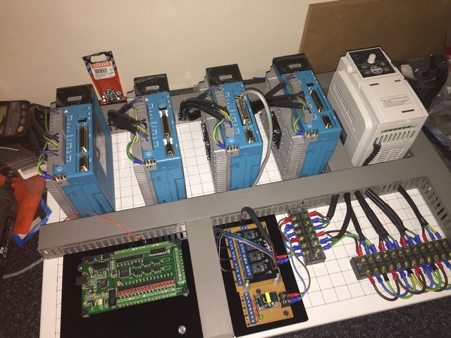 Regards the Drive fault signal and Relay then you only needed 1 relay and wire the drive fault signals in parallel so if any drive faulted it turned on the relay. The relay NO or NC contacts would be used to control other things like E-stop relay and send signals to control saying fault happened.!! . . . Much safer.Last edited by JAZZCNC; 16-06-2015 at 05:04 PM.