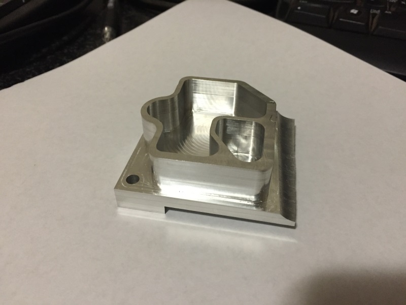 Have to do the wiring of the machine now, fit cable chains, zero and limit switches etc but could not resist to try a few test cuts. No machine bed yet so I just clamped a vice on a few blocks of wood. Took a lot of effort to get this far but thinks are finally comming together and I'm absolutely over the moon with how the machine cuts. Part below was cut 15mm deep with a 6mm HSS endmill at 1000mm/min @ 3mmDOC and finishing cut at 500mm/min and 6mm DOC.