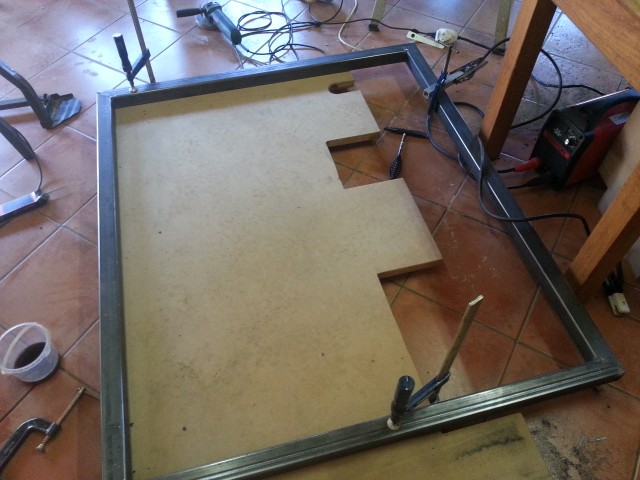 Used steel epoxy putty as per Jazz's suggestion for shimming. Worked like a dream. I can't imaging doing a steel home build without this stuff as there's just no way a beginner is going to weld something of this scale together and end up with perfectly square mated surfaces.
