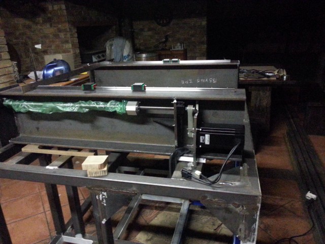 More work on the x sides. Drilling large dia holes by hand in the thick I-beam turned out to be a mission so I made two mdf boxes and drilled it on my small bench drill.