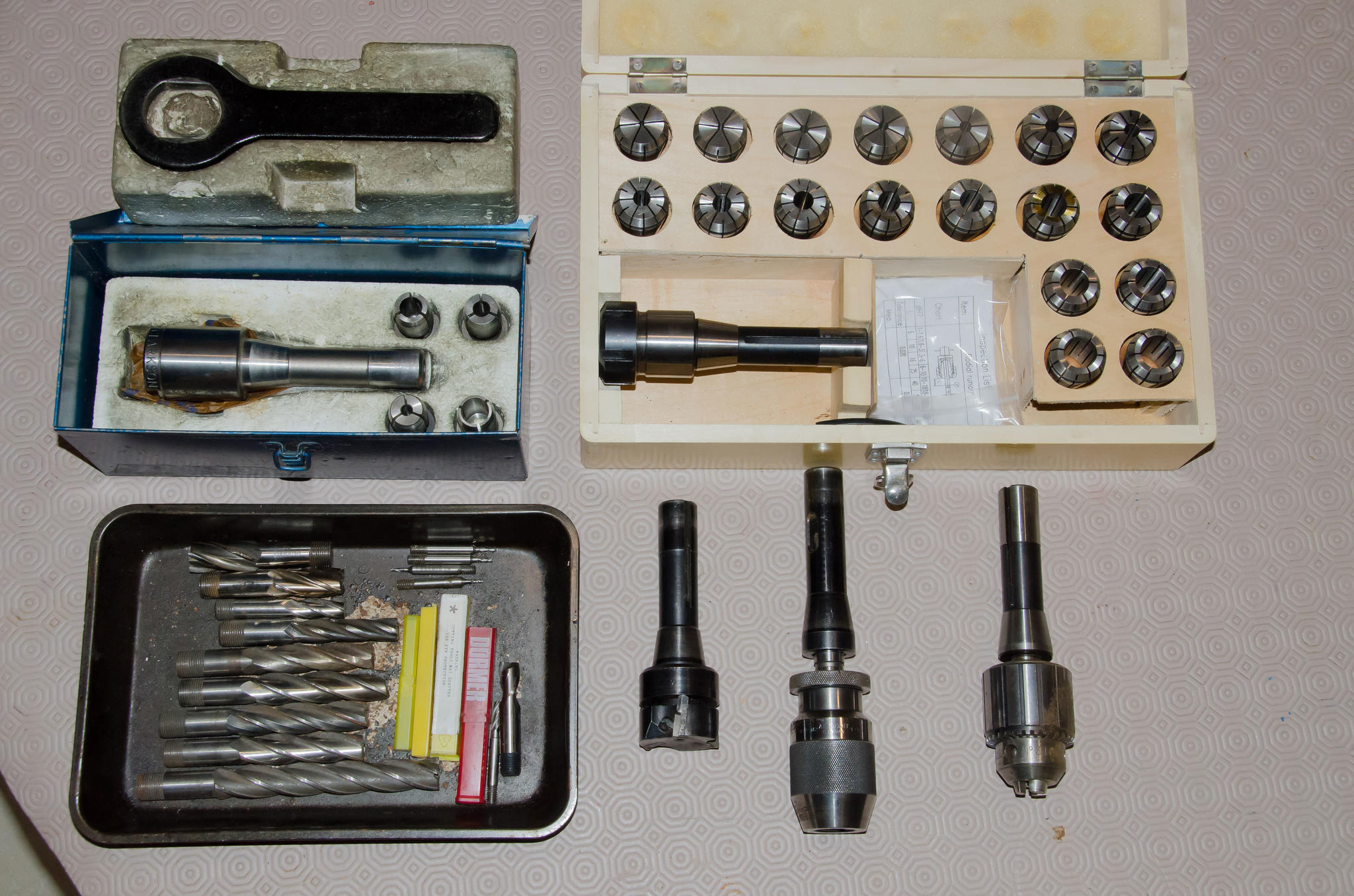 So my question is is any of these worth keeping or would I be better selling them and buying something else? The ER32 set looks like it would be very useful but the Clarkson autolock chuck already had a load of end mills with it (more not pictured). I guess I cant use the threaded end mills with the ER chuck?