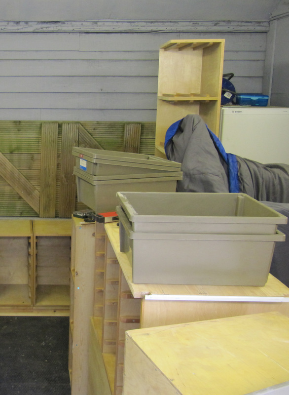 or convert an old shed. After repairing the roof [picture coming] putting in a concrete floor, [find pics] some storage arrives courtesy of hearing about them being thrown out!