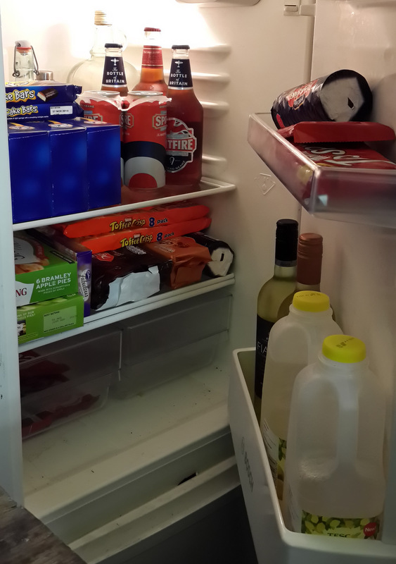 In case of working late, some refreshments may be required! :-) [update] the beer has long gone! There's half a bottle of gin, 5 litres of cider and some fruit based cordials in case of visitors.. :-)