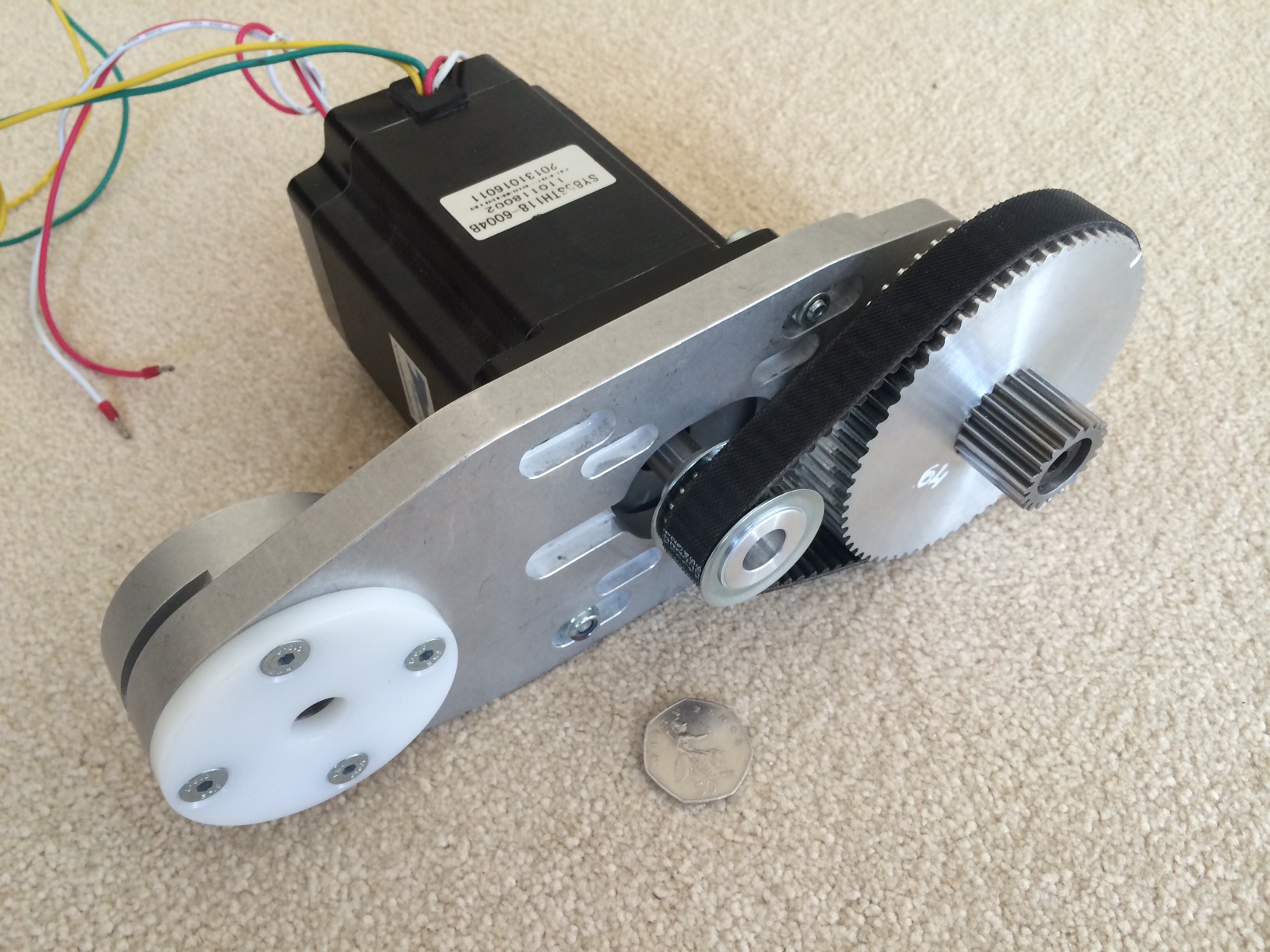 I then noticed that the hole was the exact size of the boss of a mod1 pinion so i got a couple of sizes from cnc4u and tock them to a machine shop and hand him bore out the centre to match and then i milled the small key way into it myself. I think i ened up using the 25 tooth pinion as i wanted the smallest posable.