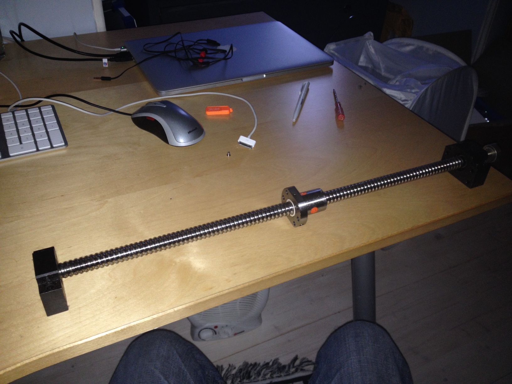 Custom built Z Axis, double nut ballscrew of brand unknown. Rail and carriages are NSK. Stepper mount included.