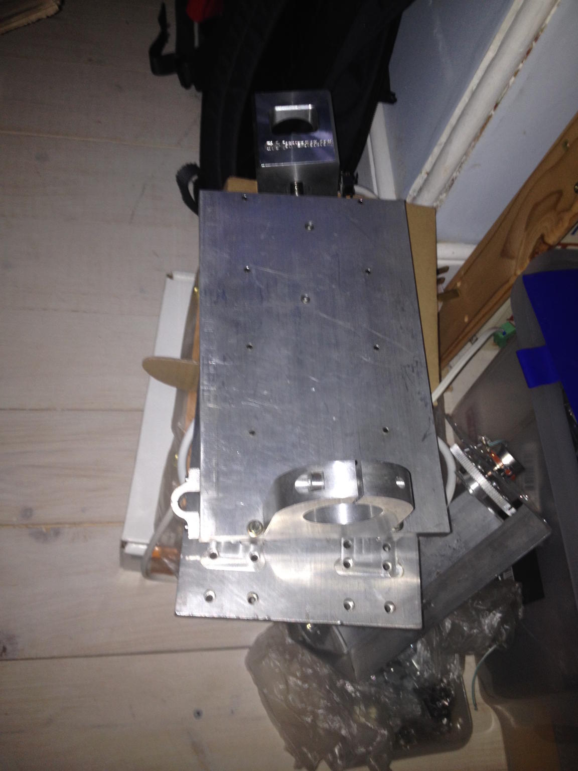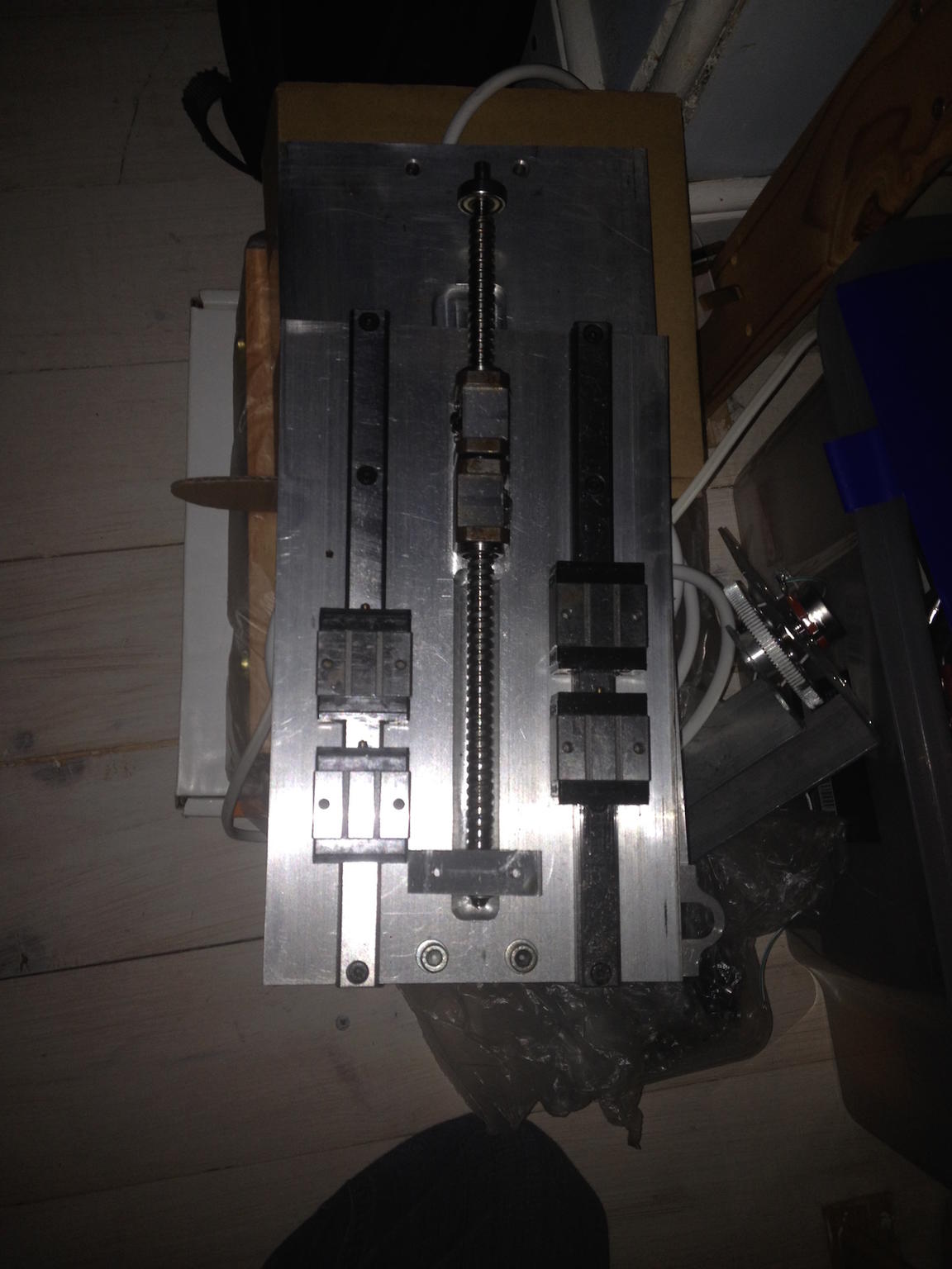 Custom built Z Axis, double nut ballscrew of brand unknown. Rail and carriages are NSK. Stepper mount included.