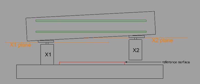 Top rails are about 1800mm, spaced at about 1000mm. Construction is all-welded, a mix of 50x50x3 and 100x50x3. As far as I can judge, the X rails dip in the middle by about 1.3mm. I don't know if this is welding distortion, or if the original box section was slightly bent.