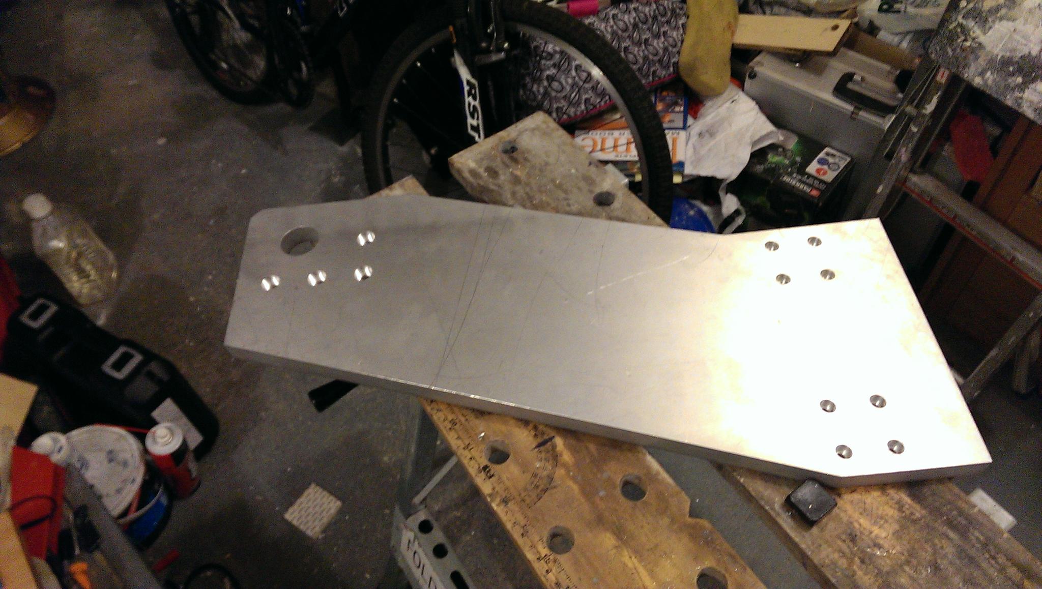 Sorry to be so tardy with postings and updates but I have been working on this. One of the things you discover when building a CNC from extrustions is the amount of drilling and thread tapping you have to do! Thanks to my neighbour who is a retired tool maker, he advised that I use spiral taps and these are brilliant when used in an electric drill! My top tip of the day! Attached are some photos of progress. You can see how the L-shaped Y axis inspired by Jazz was done. I have recently completed the drilling of the "thickner plates" which are used to mount the round supported rails because the material in the extrusions is too thin to directly mount the rails. Also I now need to clear out my garage so that I have space to assemble and check the machine!