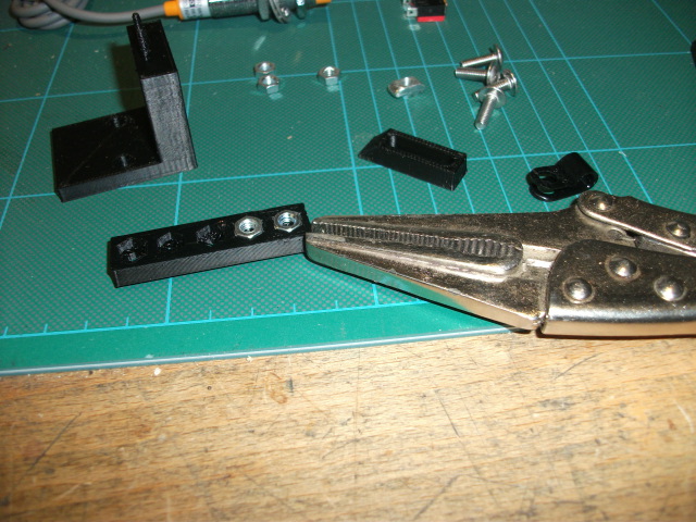 Pic 3 shows the holes for the M4 nuts which were pressed in with a pair of locking pliers as per Pic 4.