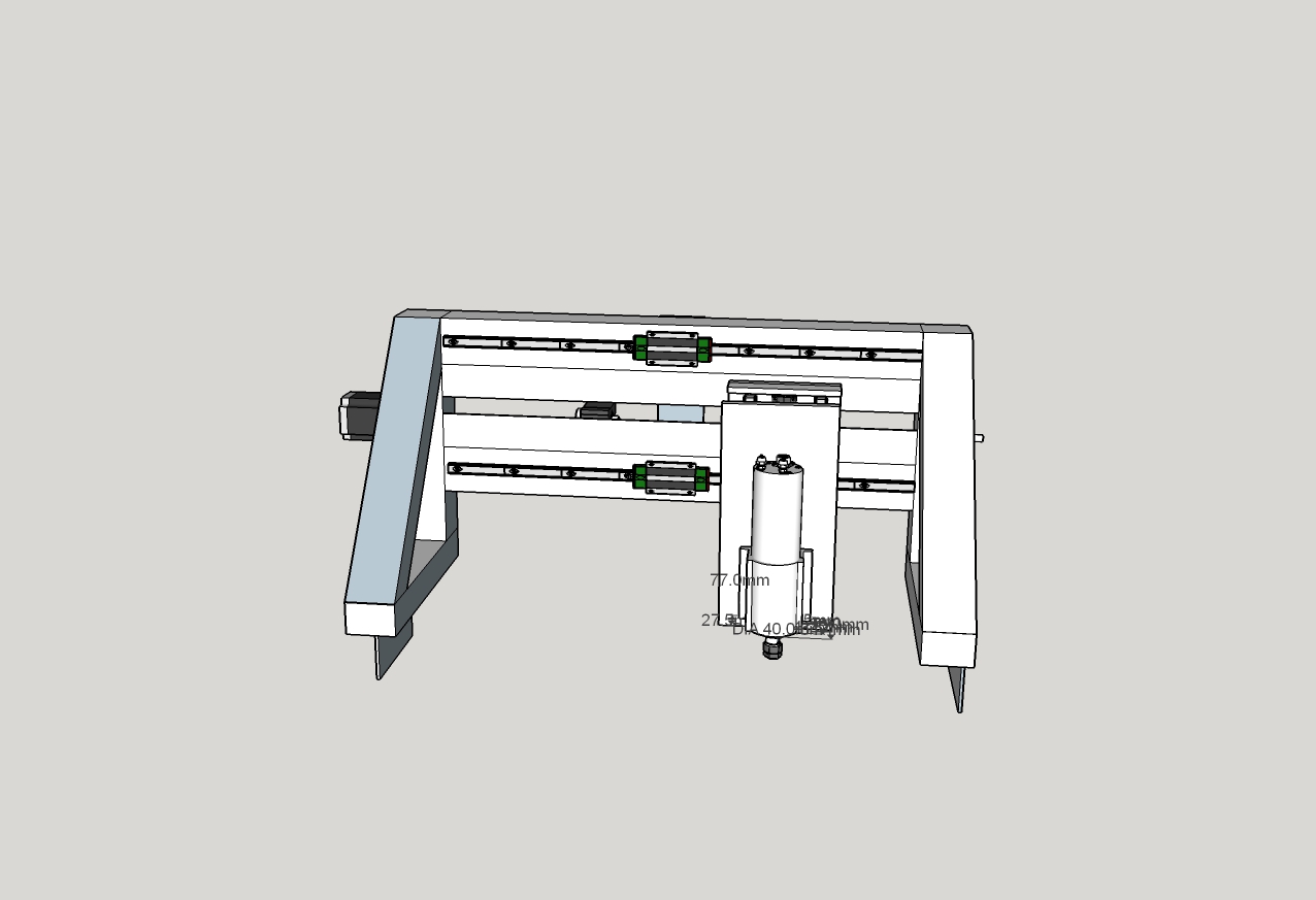 Here's my latest attempt at the gantry and z axis, I think if I can manage the budget I may be able to get the 4way loading bearings rails for the gantry but I haven't priced anything yet.the z axis is 230mmx120mm