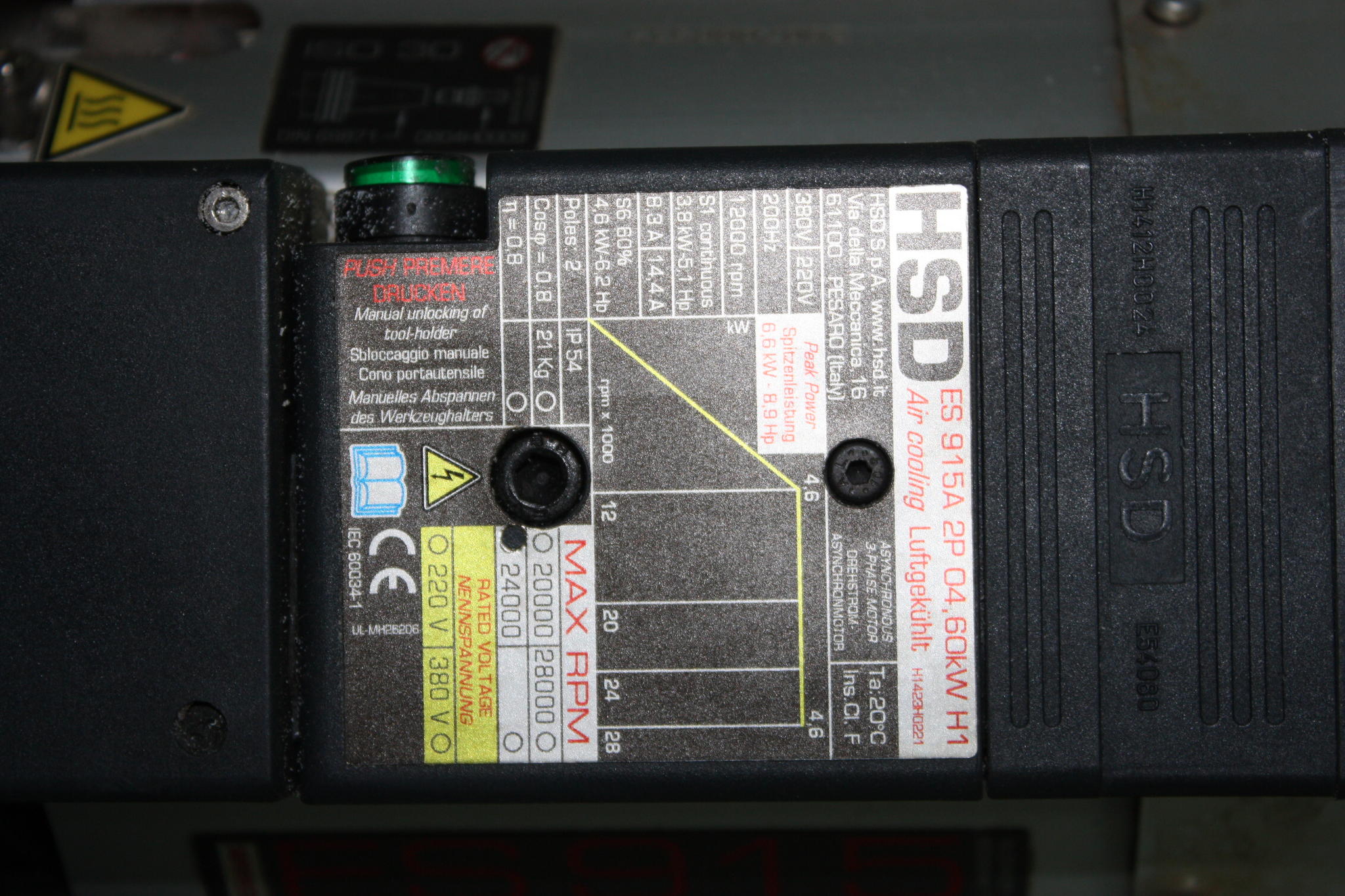 10 HP motor with quick release for tool change