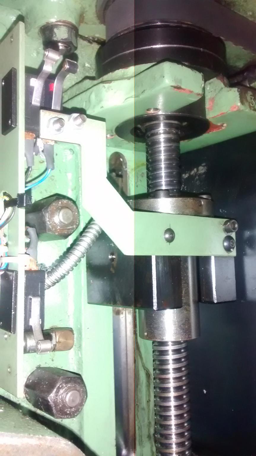 Bracket attaches to the quill via the 'vertical' slot. This bracket also contains the ball nut. The ball screw is mounted externally of the head fixed top and bottom (obviously) a timing pulley it attached to the top of the ball screw, then the motor is mounted in close proximity to the head timing belt transfers the motion to the screw.
